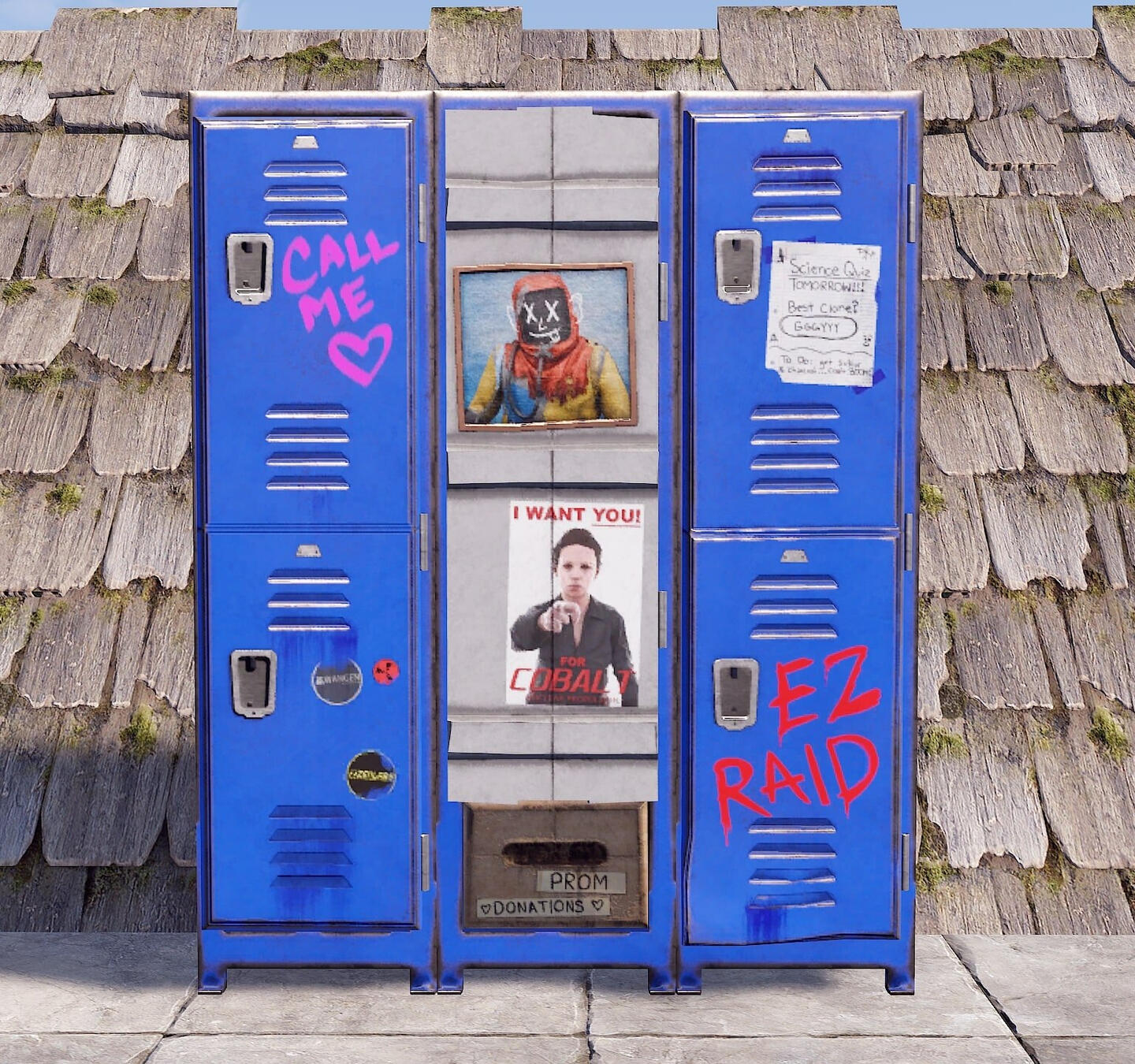 Locker skin modeled in high poly and baked onto a base low poly mesh with custom textures created by myself.